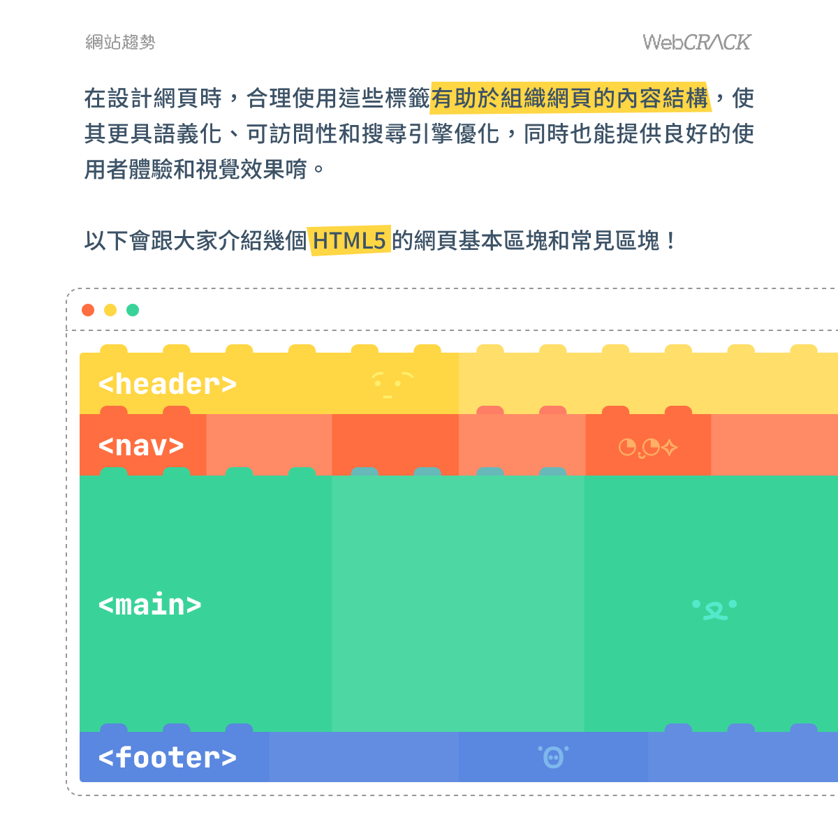 今天會跟大家介紹幾個 HTML5 的網頁基本區塊和常見區塊如何應用!