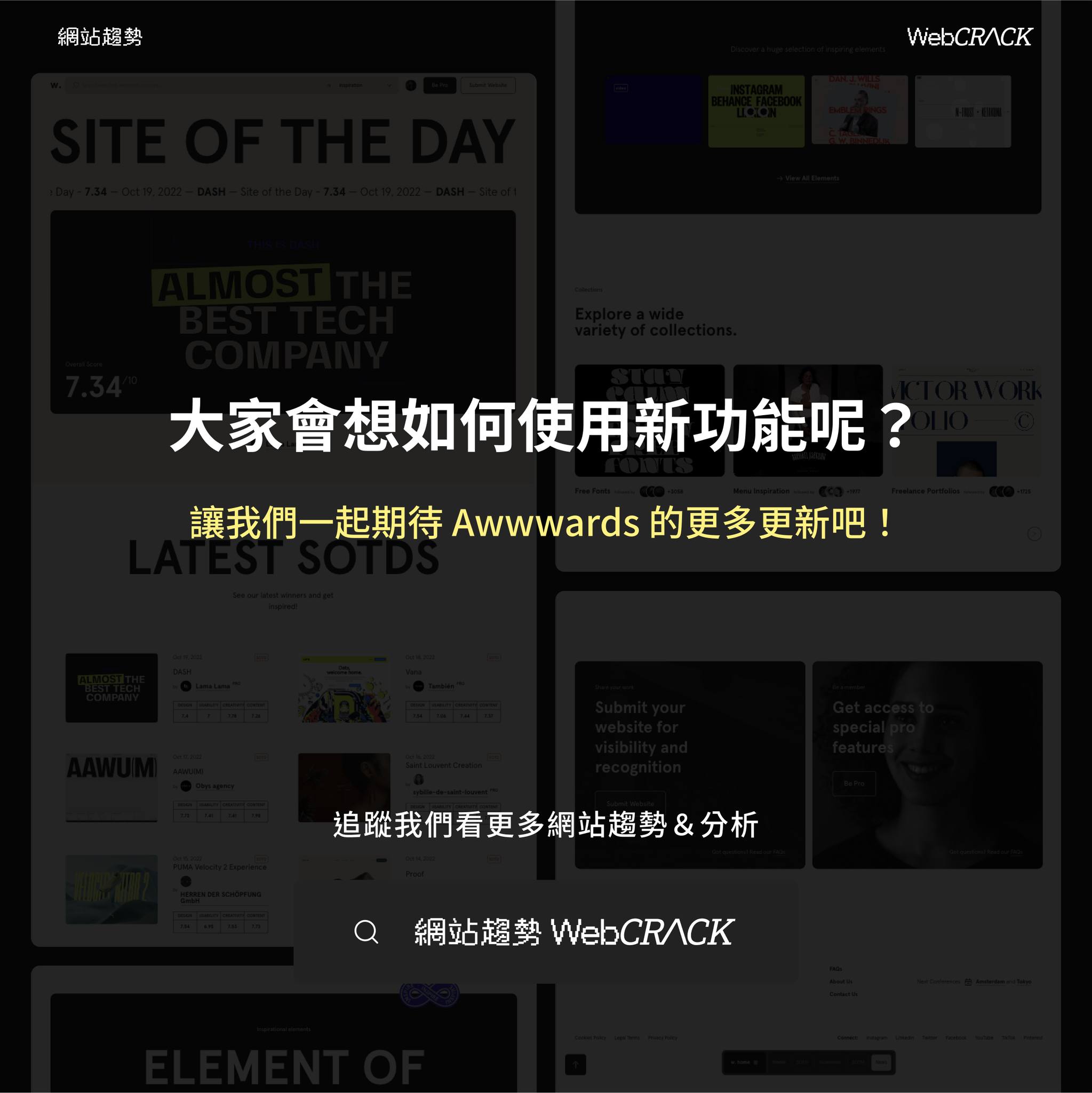 Awwwards 這次的大改版,有種讓網站設計宇宙又更加擴大完整的感覺,這項改變也許還不太適應,但相信後續對於網站設計工作者與有需求的業主都會是一項福利吧!讓我們一起期待 Awwwards 的持續更新吧!!